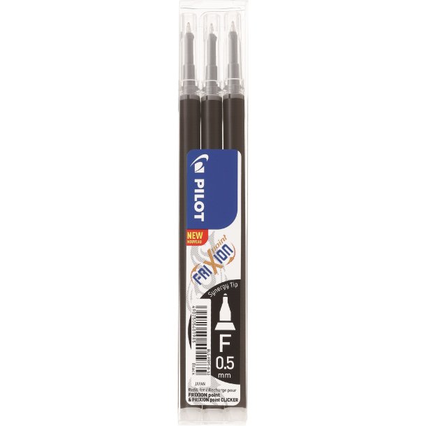Pakke med 3 stk. refill til Pilot Frixion 0,5 sort.